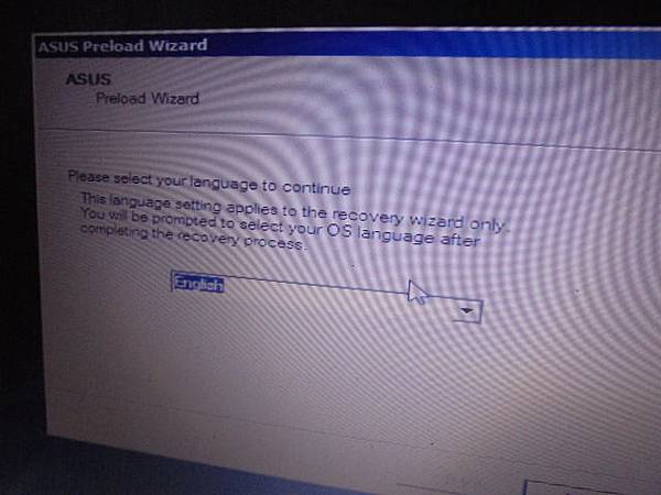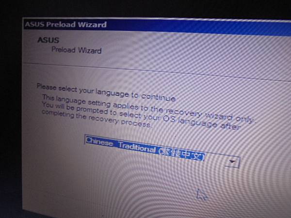 HGST昱科500GB SATA→7mm硬碟裝在ASUS華碩筆記型電腦~忽然開機讀不到硬碟→華碩判定硬碟讀取異音→已救回工作圖檔~ASUS華碩原廠安裝畫面→新北市中和區-盛小姐【下拉選擇繁體中文】