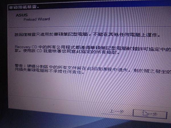 HGST昱科500GB SATA→7mm硬碟裝在ASUS華碩筆記型電腦~忽然開機讀不到硬碟→華碩判定硬碟讀取異音→已救回工作圖檔~ASUS華碩原廠安裝畫面→新北市中和區-盛小姐【下拉選擇繁體中文】