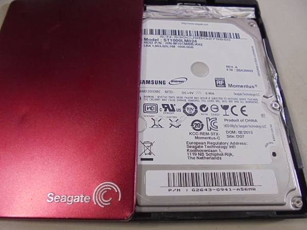 Seagate希捷SRD00F1~1TB外接硬碟連接電腦突然出現異音無法讀取→就近送NOVA店家拆殼判定亦無法處理~要救回PSD美工圖檔→外殼是希捷品牌內裝卻為三星硬碟~桃園市中壢區-陳小姐【ST1000LM024】