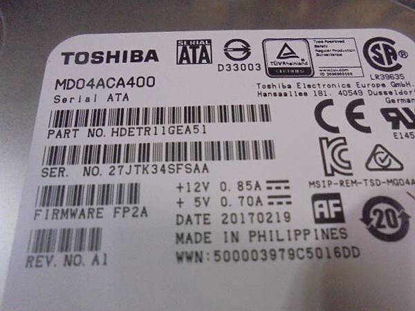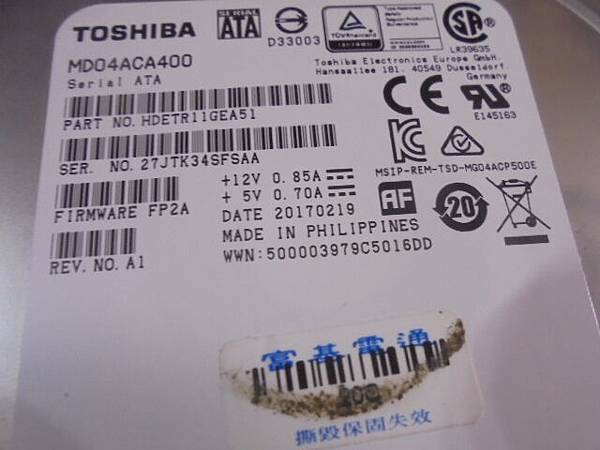 TOSHIBA東芝4TB→3.5吋硬碟接在電腦~不慎折斷SATA訊號7Pin接座而無法讀取→自己嘗試焊接但焊不起來~更換代用接座繼續使用→再回頭看原廠標籤~新北市中和區-陳先生【硬碟的出廠日期到損壞約6個月】