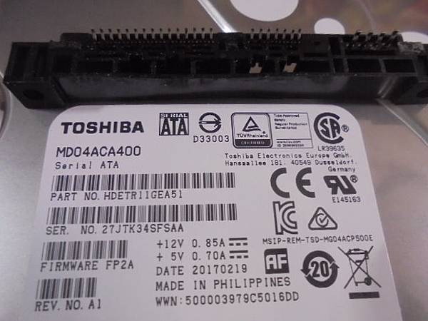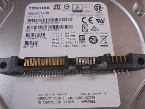 TOSHIBA東芝4TB→3.5吋硬碟接在電腦~不慎折斷SATA訊號7Pin接座而無法讀取→自己嘗試焊接但焊不起來~更換代用接座繼續使用→再回頭看原廠標籤~新北市中和區-陳先生【硬碟的出廠日期到損壞約6個月】