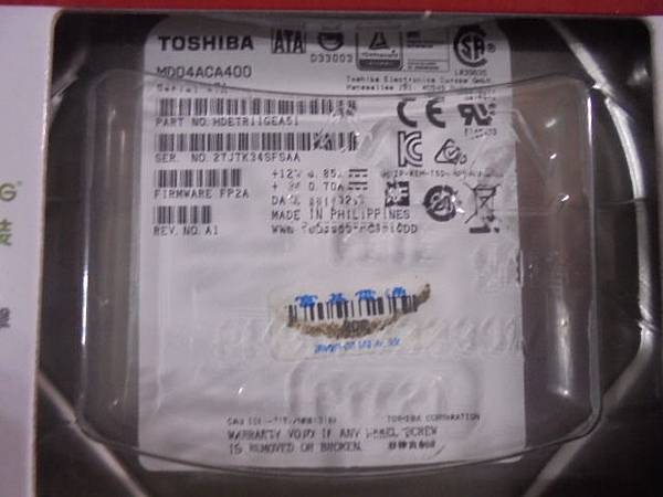 TOSHIBA東芝4TB~3.5吋硬碟僅使用一次→不慎折斷SATA訊號7Pin接座而無法讀取~自己嘗試焊接但焊不起來→更換代用接座繼續使用~原廠透明罩裝有4TB硬碟→新北市中和區-陳先生【滑進原廠紙盒交還客戶帶回】