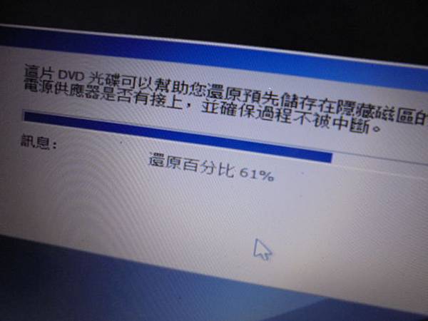 HGST昱科500GB SATA~硬碟裝在ASUS華碩筆記型電腦→貓咪曾於NB上跳躍~經華碩判定硬碟讀取異音無能力處理→已救回工作圖檔→這片DVD光碟可以幫助您還原~新北市中和區-盛小姐【還原百分比61%】