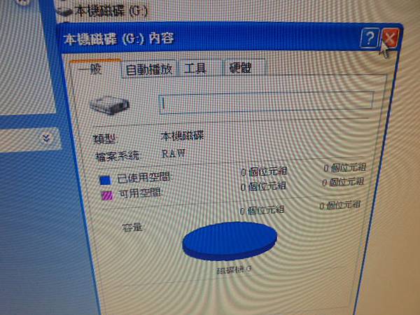 Seagate希捷SRD00F1~1TB外接硬碟連接電腦突然出現異音無法讀取→就近送NOVA店家拆殼判定亦無法處理~要救回PSD美工圖檔→開啟工具程式檢測Disk 1 0KB~桃園市中壢區-陳小姐【G:空白沒有容量】