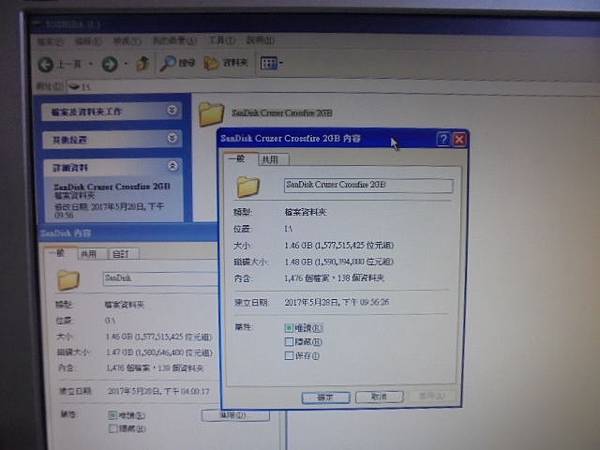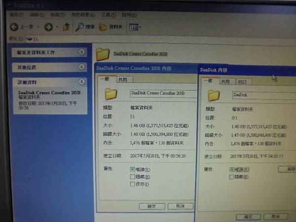 SanDisk新帝Cruzer Crossfire→2GB隨身碟插桌上型電腦讀取~不慎撞到USB接頭歪斜而無法使用→已救回隨身碟裏檔案資料~TOSHIBA內容I→花蓮縣吉安鄉-羅小姐【卸除式磁碟已使用空間1.48GB】