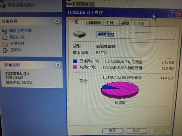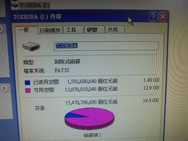 SanDisk新帝Cruzer Crossfire→2GB隨身碟插桌上型電腦讀取~不慎撞到USB接頭歪斜而無法使用→已救回隨身碟裏檔案資料~停止硬體裝置→花蓮縣吉安鄉-羅小姐【可以放心移除硬體TOSHIBA USB】