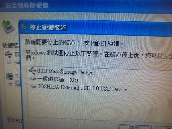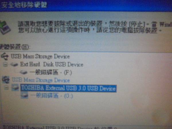 SanDisk新帝Cruzer Crossfire→2GB隨身碟插桌上型電腦讀取~不慎撞到USB接頭歪斜而無法使用→已救回隨身碟裏檔案資料~停止硬體裝置→花蓮縣吉安鄉-羅小姐【可以放心移除硬體TOSHIBA USB】