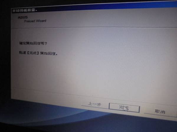HGST昱科500GB SATA→7mm硬碟裝在ASUS華碩筆記型電腦~忽然開機讀不到硬碟→華碩判定硬碟讀取異音~已救回工作圖檔→將Windows回復到有兩個分割區的硬碟~新北市中和區-盛小姐【下一步】