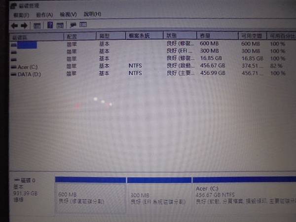 ACER宏碁E5-471G→筆記型電腦開機後沒有運作時~磁碟處理程序過高→作業系統用起來卡卡的~想要解決目前的異常問題→磁碟0基本931.39GB連線~新北市樹林區-顏小姐【600MB良好】