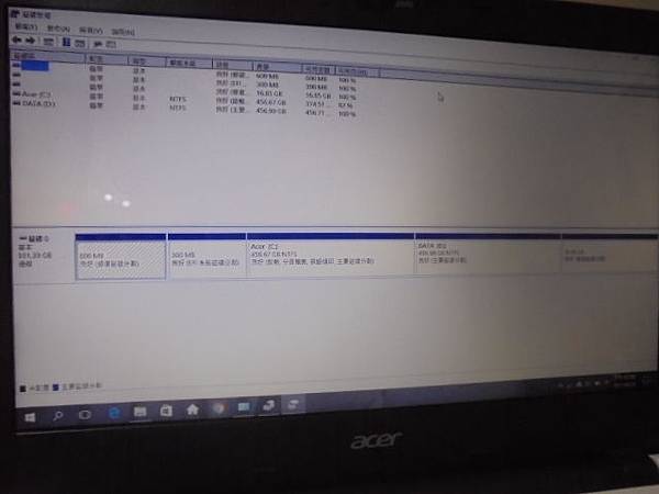 ACER宏碁E5-471G~筆記型電腦開機後沒有運作時→磁碟處理程序過高~作業系統用起來卡卡的→想要解決目前的異常問題~磁碟管理磁碟區檔案系統正確→新北市樹林區-顏小姐【切割5個使用磁區】