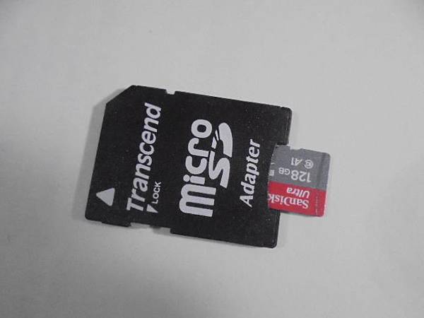SanDisk晟碟Micro SDXC→128GB記憶卡裝在SAMSUNG三星手機~不知原因無法讀取→要救回儲存多年的照片相片檔案~記憶卡本體非常小心→新北市板橋區-劉小姐【滑進Transcend轉接卡】