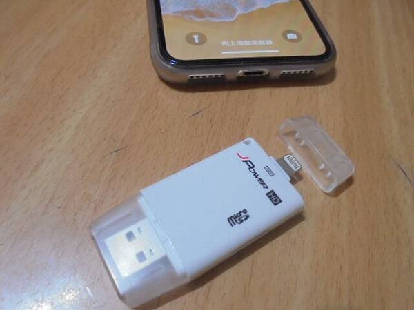 Apple蘋果iPhone X~256GB智慧型手機安裝APP程式時→不慎按了重置後手機仍繼續使用~照片影片全數消失→要救回相片影片~iPhone X仍在開機狀態→臺北市信義區-徐小姐【OTG讀卡機正面與反面外觀】 Apple蘋果iPhone X~256GB智慧型手機安裝APP程式時→不慎按了重置後手機仍繼續使用~照片影片全數消失→要救回相片影片~Lightning介面接頭~臺北市信義區-徐小姐【預備插入手機底端母座】