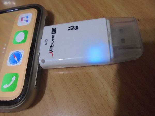 Apple蘋果iPhone X→256GB智慧型手機安裝APP程式時~彈出不支援視窗後不慎按了重置→照片影片全數消失~要救回相片影片→OTG讀卡機已過電並亮指示藍燈~臺北市信義區-徐小姐【手機處於開機狀態下】 Apple蘋果iPhone X~256GB智慧型手機安裝APP程式時→不慎按了重置後手機仍繼續使用~照片影片全數消失→要救回相片影片~Lightning介面接頭~臺北市信義區-徐小姐【預備插入手機底端母座】
