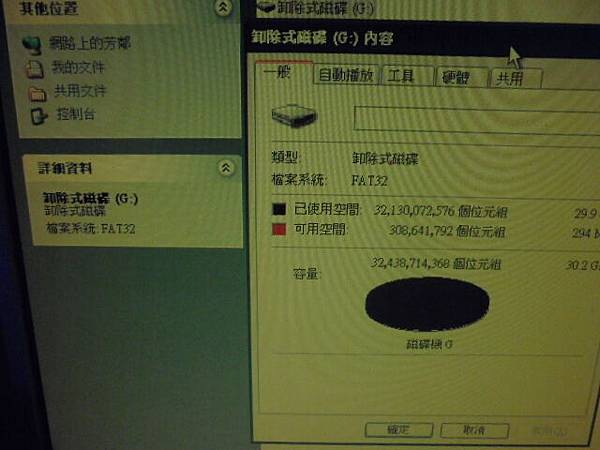 ADATA威剛C906~32GB隨身碟存進多種類型檔案資料→突然某天照片影片就無法正常瀏覽播放~要救回儲存多年的相片影片→卸除式磁碟G~新北市板橋區-黃小姐【已使用空間29.9GB可用空間294MB】