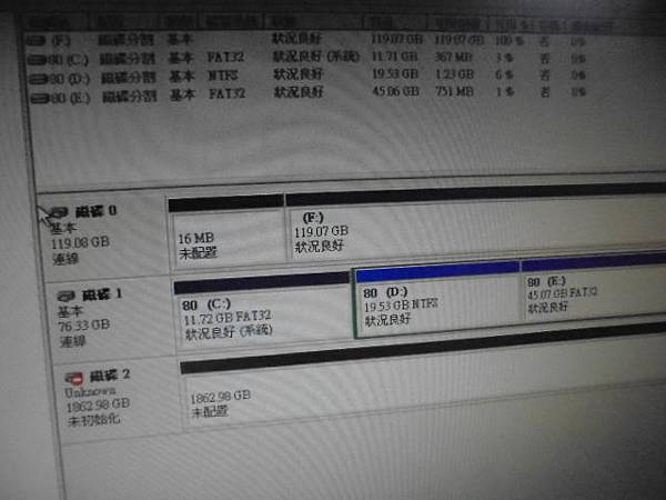 【隔天取回】ADATA威剛2TB~HV620外接式硬碟是友人贈送已很久沒使用→突然發現有很多螞蟻從傳輸線孔跑進跑出~檢測後確認硬碟好的→購買新硬碟複製檔案資料~點進存放裝置磁碟管理→新北市板橋區-林小姐【磁碟區(F:)FAT32磁碟區(G:)NTFS】