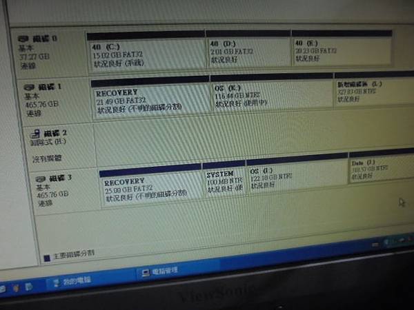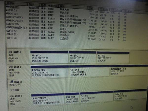 HGST昱科500GB SATA→7mm硬碟裝在ASUS華碩筆記型電腦~忽然開機讀不到硬碟→華碩判定硬碟讀取異音→已救回工作圖檔~存放磁碟管理→新北市中和區-盛小姐【3顆硬碟總計分割出10個使用磁區】