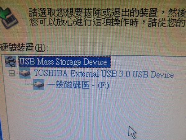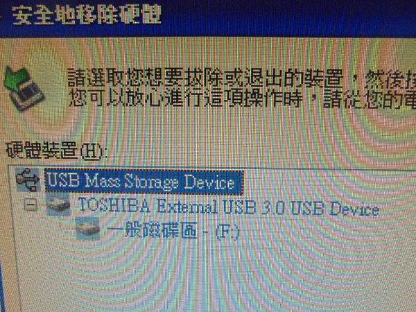 ADATA威剛C906→32GB隨身碟存進多種類型檔案資料~突然某天照片影片就無法正常瀏覽播放→已救回儲存多年的相片影片~硬體裝置H TOSHIBA USB 3.0→新北市板橋區-黃小姐【安全地移除硬體】
