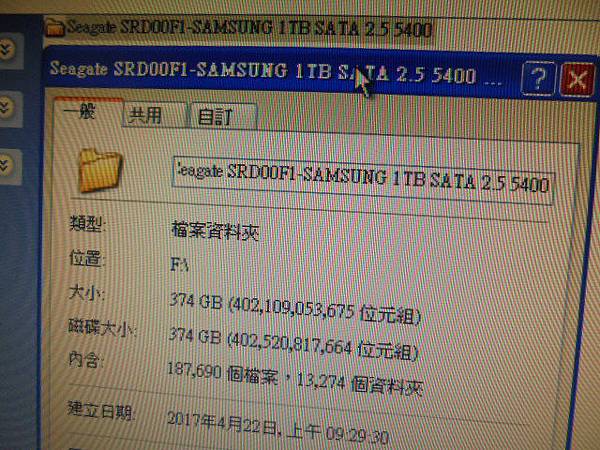 Seagate希捷SRD00F1~1TB外接硬碟連接電腦突然出現異音無法讀取→就近送NOVA店家拆殼判定亦無法處理~要救回PSD美工圖檔→資料夾374GB~桃園市中壢區-陳小姐【187858個檔案13279個資料夾】