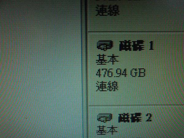 HGST昱科500GB SATA~硬碟裝在ASUS華碩筆記型電腦→貓咪曾於NB上跳躍~經華碩判定硬碟讀取異音無能力處理→已救回工作圖檔~滑鼠點選磁碟管理→新北市中和區-盛小姐【磁碟1基本476.94GB連線】