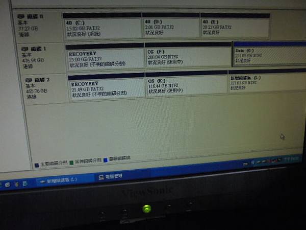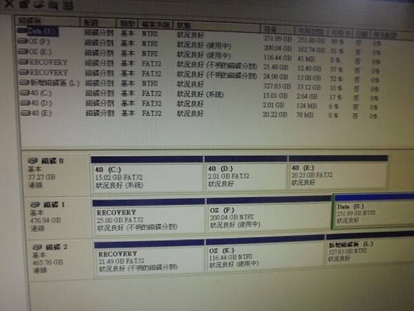 HGST昱科500GB SATA~硬碟裝在ASUS華碩筆記型電腦→貓咪曾於NB上跳躍~經華碩判定硬碟讀取異音無能力處理→已救回工作圖檔~滑鼠點選磁碟管理→新北市中和區-盛小姐【磁碟1基本476.94GB連線】