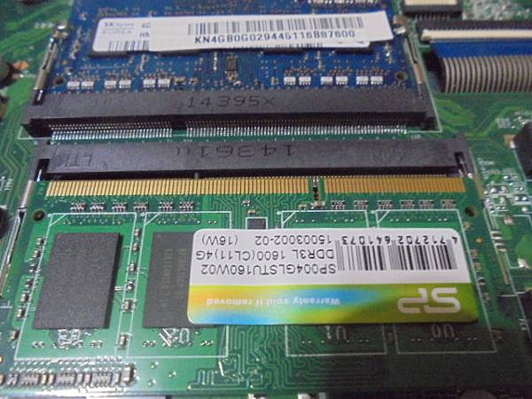 ACER宏碁E5-471G~筆記型電腦開機後沒有運作時→磁碟處理程序過高~作業系統用起來卡卡的→已更換固態硬碟解決問題~正面SP廣穎標籤貼紙→新北市樹林區-顏小姐【翻至背面準備將記憶體插入】