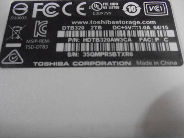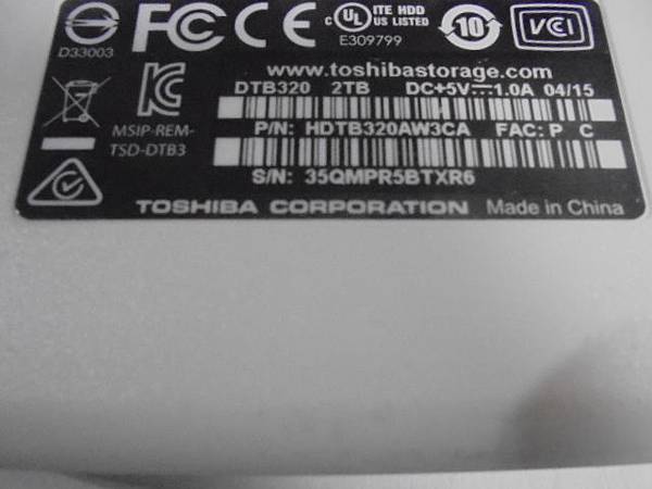 TOSHIBA東芝A2行動硬碟2TB→Micro USB 3.0接座損壞無法使用~送至原廠判定亦無法解決問題→要取出硬碟裏重要的檔案資料~行動硬碟背面東芝原廠序號標籤→新北市土城區-林先生【DTB320 2TB】