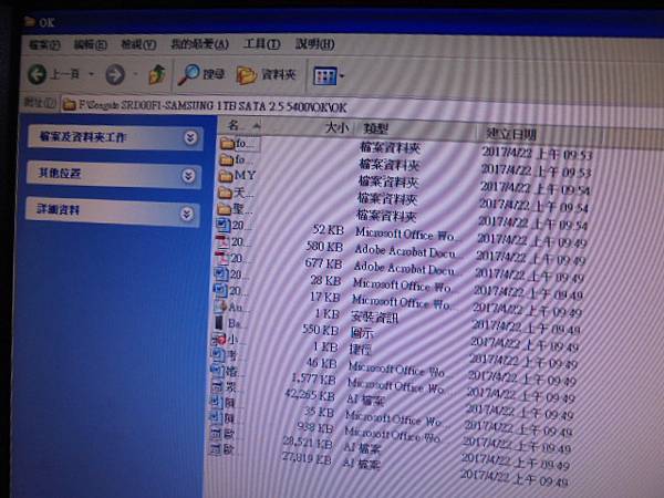 Seagate希捷SRD00F1→1TB外接硬碟連接電腦突然出現異音無法讀取~就近送NOVA店家拆殼判定亦無法處理→已救回AI美工圖檔~由三星損壞硬碟中救出的檔案資料→桃園市中壢區-陳小姐【展開資料夾與檔案列表】