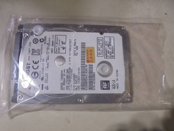 HGST昱科500GB SATA~硬碟裝在ASUS華碩筆記型電腦→貓咪曾於NB上跳躍~經華碩判定硬碟讀取異音無能力處理→已救回工作圖檔~由硬碟座上拔出→新北市中和區-盛小姐【HGST昱科500GB硬碟7mm】