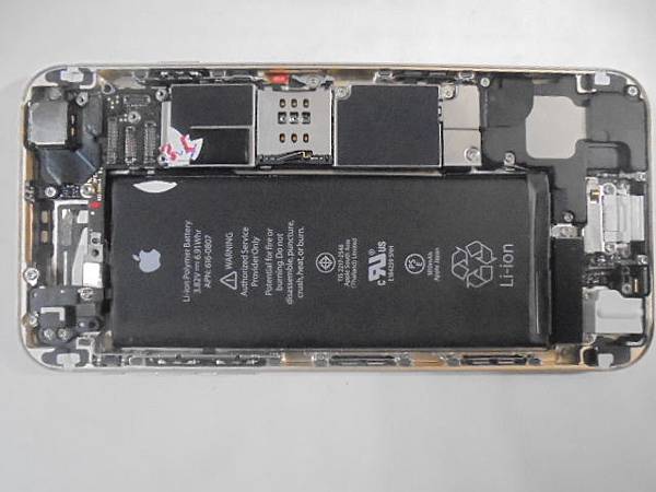 Apple蘋果iPhone 6→64GB智慧型手機不慎手滑掉進浴缸裏泡水~由浴缸取出後已經無法開機→當下人在臺南市不知該怎麼辦~要救回超過一萬個相片影片檔案→金屬片拔開後有2個連接排扣~新北市板橋區-吳小姐【依序拆離2個連接排扣】