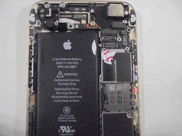 Apple蘋果iPhone 6~64GB智慧型手機不慎手滑掉進浴缸裏泡水→由浴缸取出後已經無法開機~手機掉進水中時仍在開機狀態→要救回超過一萬個相片影片檔案~為了要拆出主機板→新北市板橋區-吳小姐【必需要拆解相當多螺絲和連接排扣】