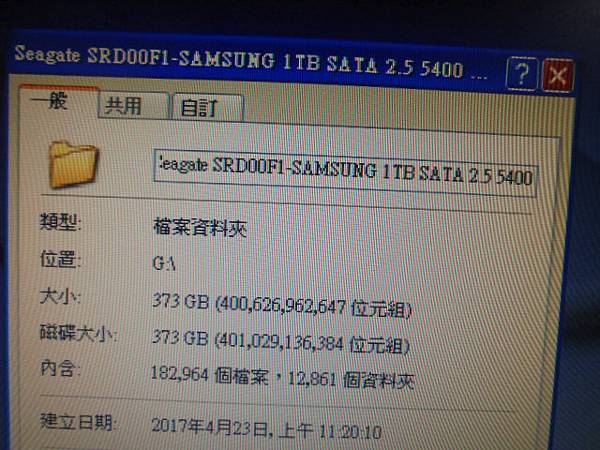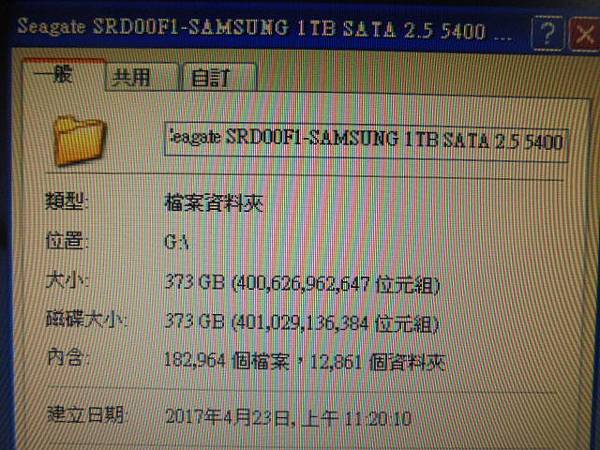 Seagate希捷SRD00F1~1TB外接硬碟連接電腦突然出現異音無法讀取→判定硬碟的讀寫頭異常再經開蓋讀取碟片~已救回PSD美工圖檔→373GB容量~桃園市中壢區-陳小姐【182964個檔案12861個資料夾】