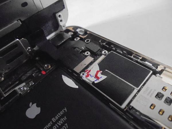 Apple蘋果iPhone 6~64GB智慧型手機不慎手滑掉進浴缸裏泡水→由浴缸取出後已經無法開機~手機掉進水中時仍在ON開機→要救回超過一萬個相片影片檔案~先前已經拆下的螢幕總成→新北市板橋區-吳小姐【依序裝回所有排線扣進排扣】