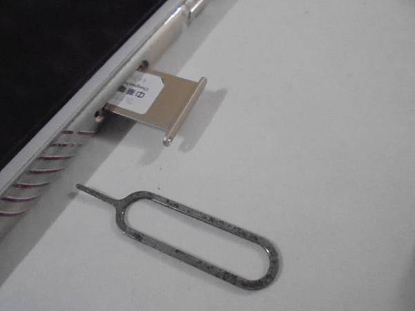 Apple蘋果iPhone 6s Plus~64GB智慧型手機被家人拿榔頭敲壞螢幕→導致手機無法觸控~已先購買新手機使用→要救回內建記憶體中的App資料~手機翻回正面電源鍵下方位置→新北市板橋區-鄭先生【取退卡針戳入SIM卡小孔】