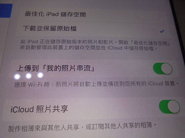 Apple蘋果iPad Air→64GB平板電腦登入與iPhone相同的Apple ID~手機已遭重置→照片影片全數消失~要救回國外旅遊的相片影片→iCloud照片共享~臺北市大安區-賴小姐【替照片加入摘要同樣右撥為ON】