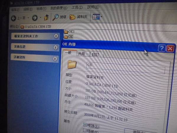 ADATA威剛CH94~1TB行動硬碟連接電腦存取→彈出尚未格式化視窗但不敢按是~經檢測後判定為邏輯性損壞→先行救回急需使用指定的教學文件檔案資料夾~前後救援處理2次的容量很相近→新北市板橋區-張小姐【OK與OK1資料夾】