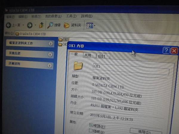 ADATA威剛CH94~1TB行動硬碟連接電腦存取→彈出尚未格式化視窗但不敢按是~經檢測後判定為邏輯性損壞→先行救回急需使用指定的教學文件檔案資料夾~49911個檔案1192個資料夾→新北市板橋區-張小姐【OK1救出185GB】