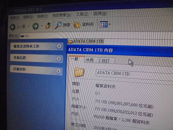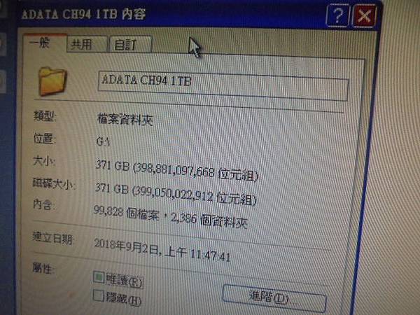 ADATA威剛CH94→1TB行動硬碟連接電腦存取~彈出尚未格式化視窗但不敢按是→先請同事幫忙卻說無法處理~要救回教學文件及孩子的相片影片檔案資料→相加總計371GB~新北市板橋區-張小姐【99828個檔案2386個資料夾】