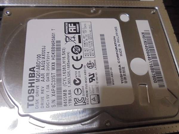 【容量正確】TOSHIBA東芝V6愛線碟1TB~BASICS外接式硬碟USB 3.0接上電腦讀取→出現需要格式化磁碟機視窗~無法存取與參數錯誤視窗→想救回家族成員照片影片~愛線碟V6的上蓋與底殼→臺北市西寧北路-曾先生【拆出的TOSHIBA東芝1TB裸碟2.5吋】