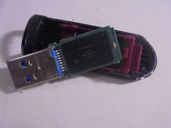 SanDisk晟碟USB 3.0~128GB隨身碟不知插到什麼裝置後→USB接頭再也插不進接座~送光華商場判定需讀取記憶體顆粒→要救回重要的文件~由機構件中小心抽出隨身碟電路板→新北市永和區-何先生【目視9隻針腳全數完整】