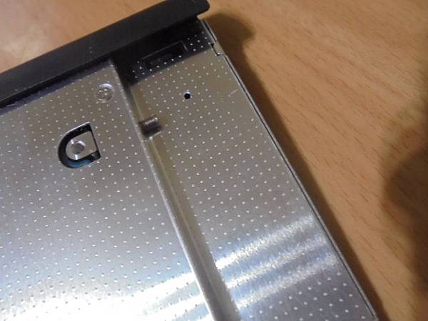 ACER宏碁E5-471G→筆記型電腦開機後沒有運作時~磁碟處理程序過高→作業系統用起來卡卡的~更換SSD硬碟解決問題→ACER宏碁筆記型電腦翻至背面~新北市樹林區-顏小姐【準備裝回原廠電池】 ACER宏碁E5-471G~筆記型電腦開機後沒有運作時→磁碟處理程序過高~作業系統用起來卡卡的→已更換固態硬碟解決問題~轉接盒翻回正面→新北市樹林區-顏小姐【滑進主機板的光碟機SATA接座】