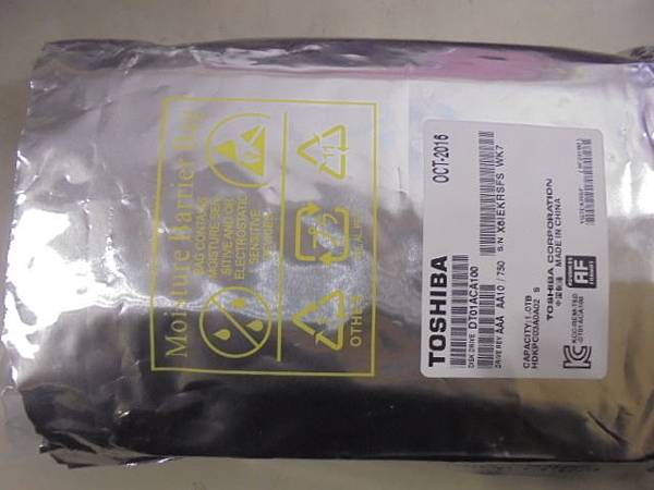 Seagate希捷3.5吋1TB→Lemel聯強桌上型電腦搭載硬碟~讀取異音後先送DRS迪亞士→經開蓋後判定無法處理做退件~要救回公司重要檔案→氣泡袋再中包覆TOSHIBA東芝靜電袋~臺北市仁愛路-陳小姐【取出靜電袋】