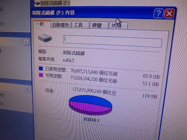 SanDisk晟碟Micro SDXC→128GB記憶卡裝在HTC手機U Ultra~儲存空間沒有容量→檢測後判定記憶卡為物理性異常~卸除式磁碟F:內容exFAT→新北市板橋區-張小姐【已使用空間65.9GB】