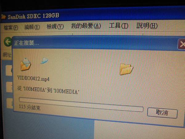 SanDisk新帝Micro SDXC~128GB記憶卡裝在HTC手機U Ultra→不知原因無法讀取~以物理性方式處理及修復記憶卡→正在複製VIDEO0596.mp4影片檔案~新北市板橋區-張小姐【到資料夾】