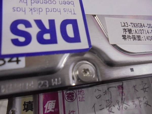 Seagate希捷3.5吋1TB→Lemel聯強桌上型電腦搭載硬碟~讀取異音後先送DRS迪亞士→經開蓋後判定無法處理做退件~要救回公司重要檔案→拉出SATA電源線停止過電~臺北市仁愛路-陳小姐【希捷硬碟翻回正面與宅配單】
