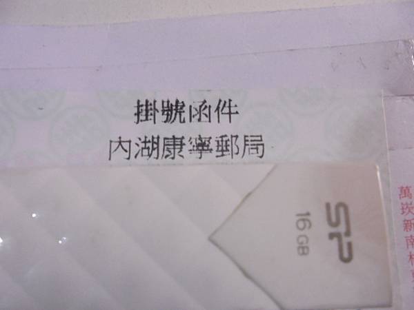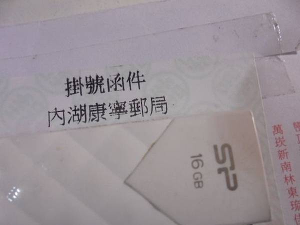 SP廣穎Ultima U03→16GB隨身碟插在電腦讀取~不慎撞到後導致USB接頭歪斜→再插上電腦已讀取不到裝置~要救回隨身碟裏的檔案資料→10月25日上午郵差先生送達掛號信~臺北市內湖區-蔣小姐【內湖康寧郵局寄出】