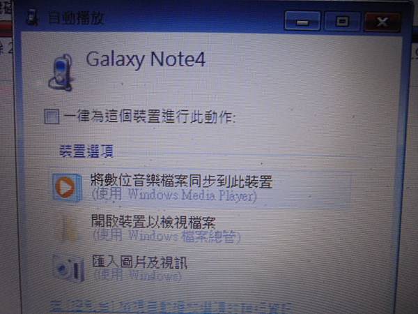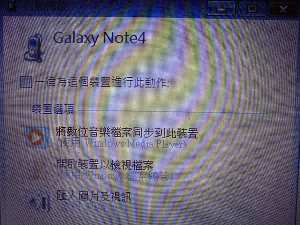 SAMSUNG三星Note 4~32GB智慧型手機使用時自動關機→插充電線沒亮充電燈完全不能開機~SM-N910U→已救回內建記憶體的App資料檔案~作業系統彈出自動播放視窗→臺北市南港區-黃小姐【Galaxy Note4】