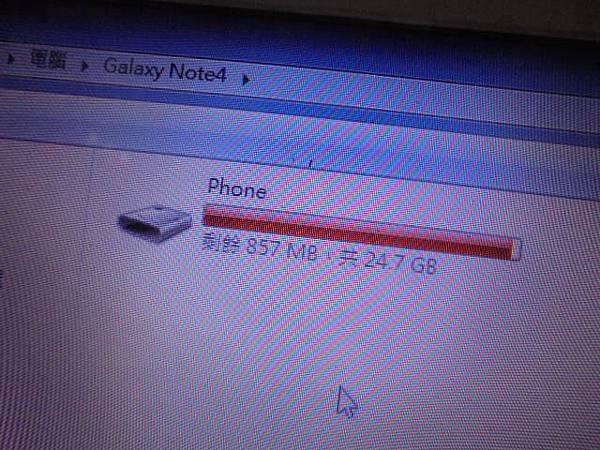 SAMSUNG三星Note 4~32GB智慧型手機使用時自動關機→插充電線沒亮充電燈完全不能開機~SM-N910U→已救回內建記憶體的App資料檔案~儲存空間將滿→臺北市南港區-黃小姐【Phone剩餘857MB共24.7GB】