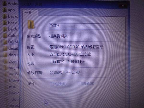 OPPO歐珀A57→32GB智慧型手機拍攝很多孩子的相片影片~手機連接筆記型電腦傳輸時→不知原因照片影片就消失不見~要救回內建記憶體裏重要的檔案→DCIM修改日期~新北市新莊區-李先生【2018/9/5下午05:48】