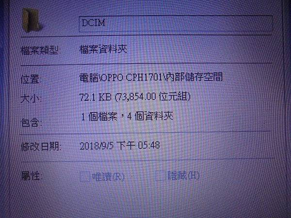 OPPO歐珀A57→32GB智慧型手機拍攝很多孩子的相片影片~手機連接筆記型電腦傳輸時→不知原因照片影片就消失不見~要救回內建記憶體裏重要的檔案→DCIM修改日期~新北市新莊區-李先生【2018/9/5下午05:48】