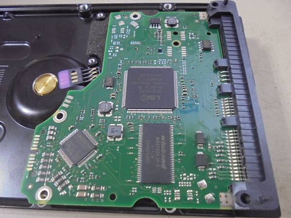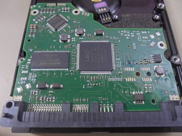 Seagate希捷3.5吋1TB→Lemel聯強桌上型電腦搭載硬碟~讀取異音後先送DRS迪亞士→經開蓋後判定無法處理做退件~要救回公司重要檔案→移開泡棉目視電路板~臺北市仁愛路-陳小姐【兩個方向看過零件均無受損或消失】